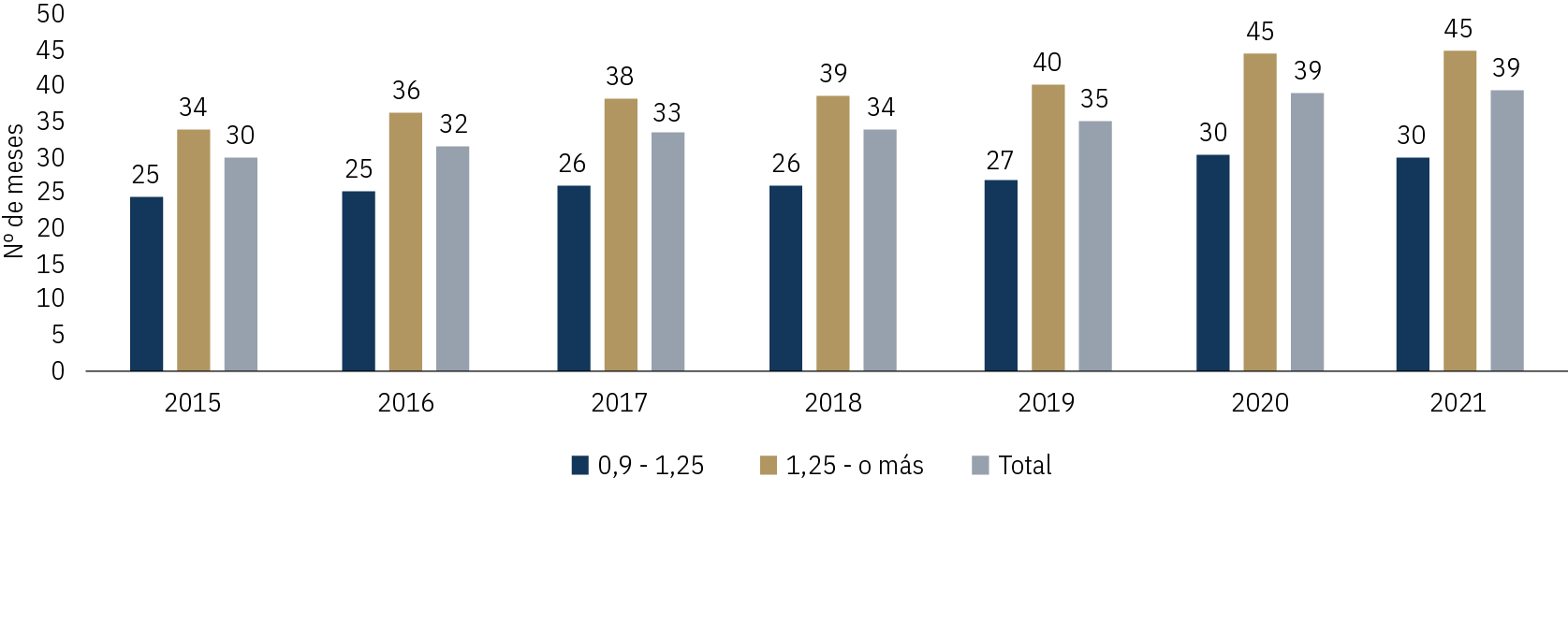 Anteriormente, entre 1990 y 2015, el IMM era reajustado anualmente en junio o julio de cada año. Entre los años 2016 y 2018, y luego el año 2020, se realizaron dos ajustes anuales, uno en enero y el otro a mitad de año[8]. Por último, en los años 2019 y 2021 ha habido un único reajuste, en marzo y mayo, respectivamente. Así, desde julio de 2015, el IMM ha aumentado aproximadamente un 40% nominal, lo que equivale a un crecimiento de 18% real en casi seis años.