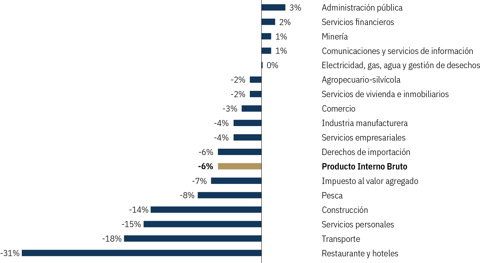 Variación porcentual PIB por sector económico, 2020 respecto a 2019