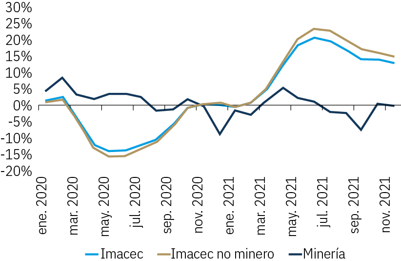 Variación anual del IMACEC (var. %), 2020 – 2021
