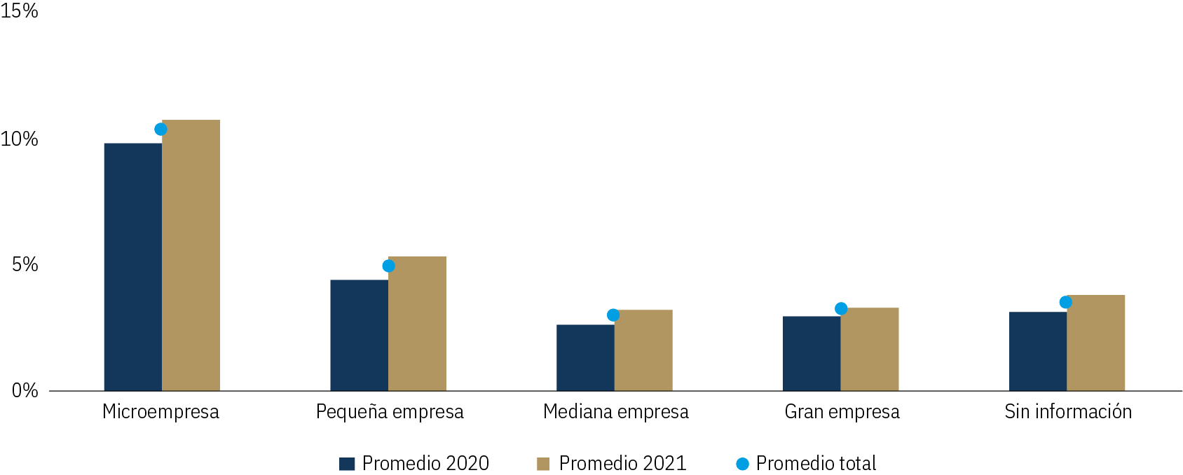 [79] En este caso, las empresas se clasifican según el número de trabajadores utilizando el promedio móvil para 12 meses de la cantidad de trabajadores.