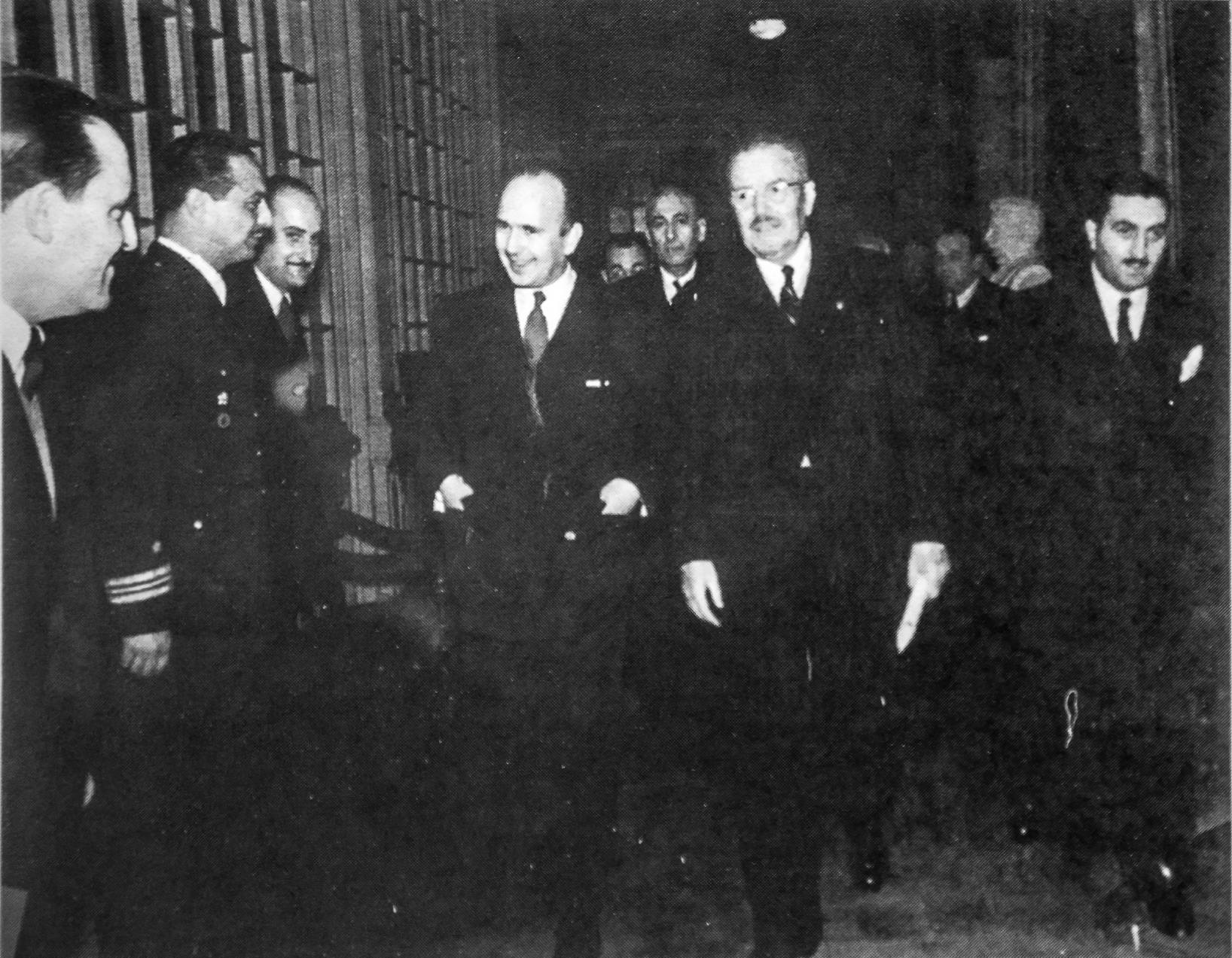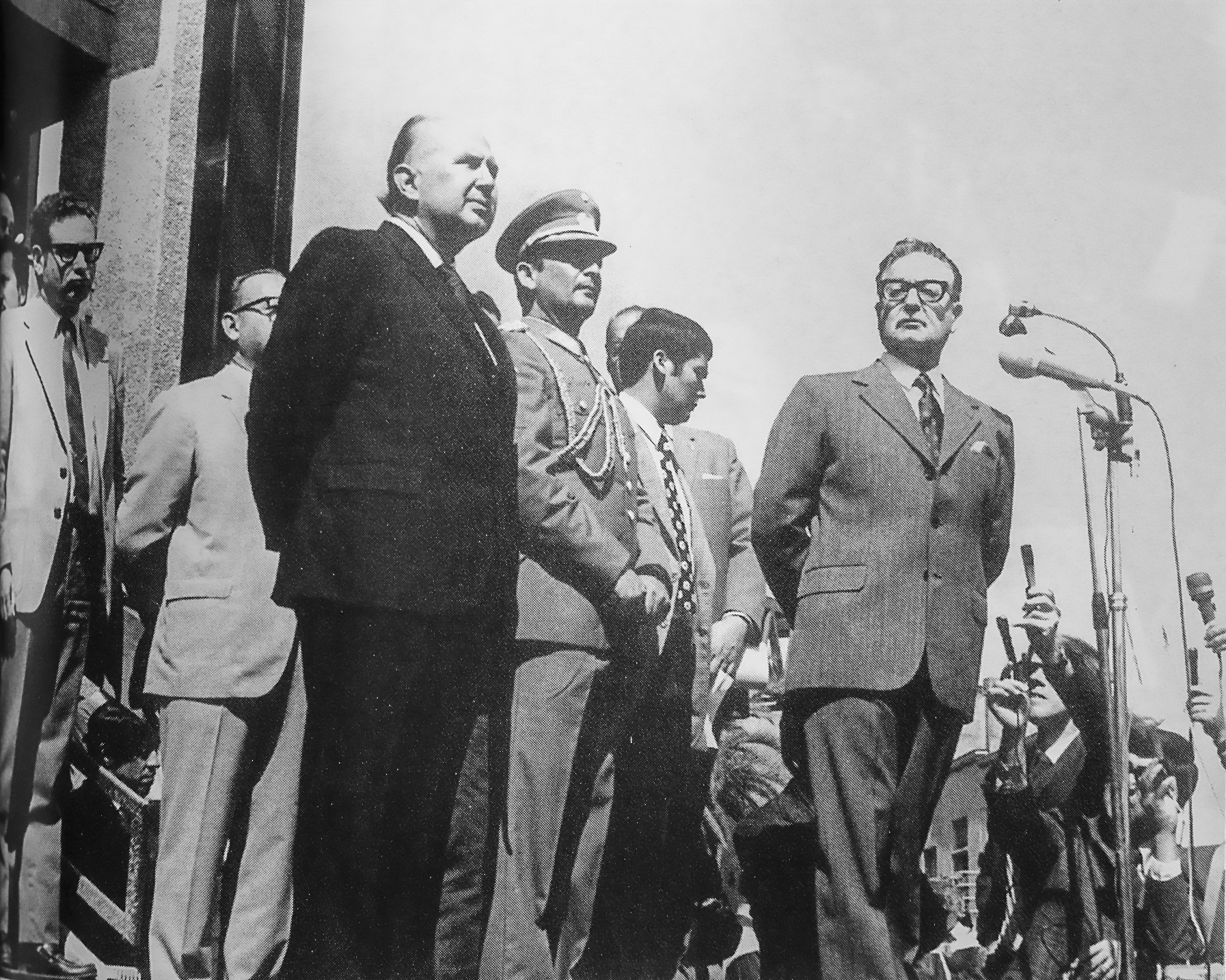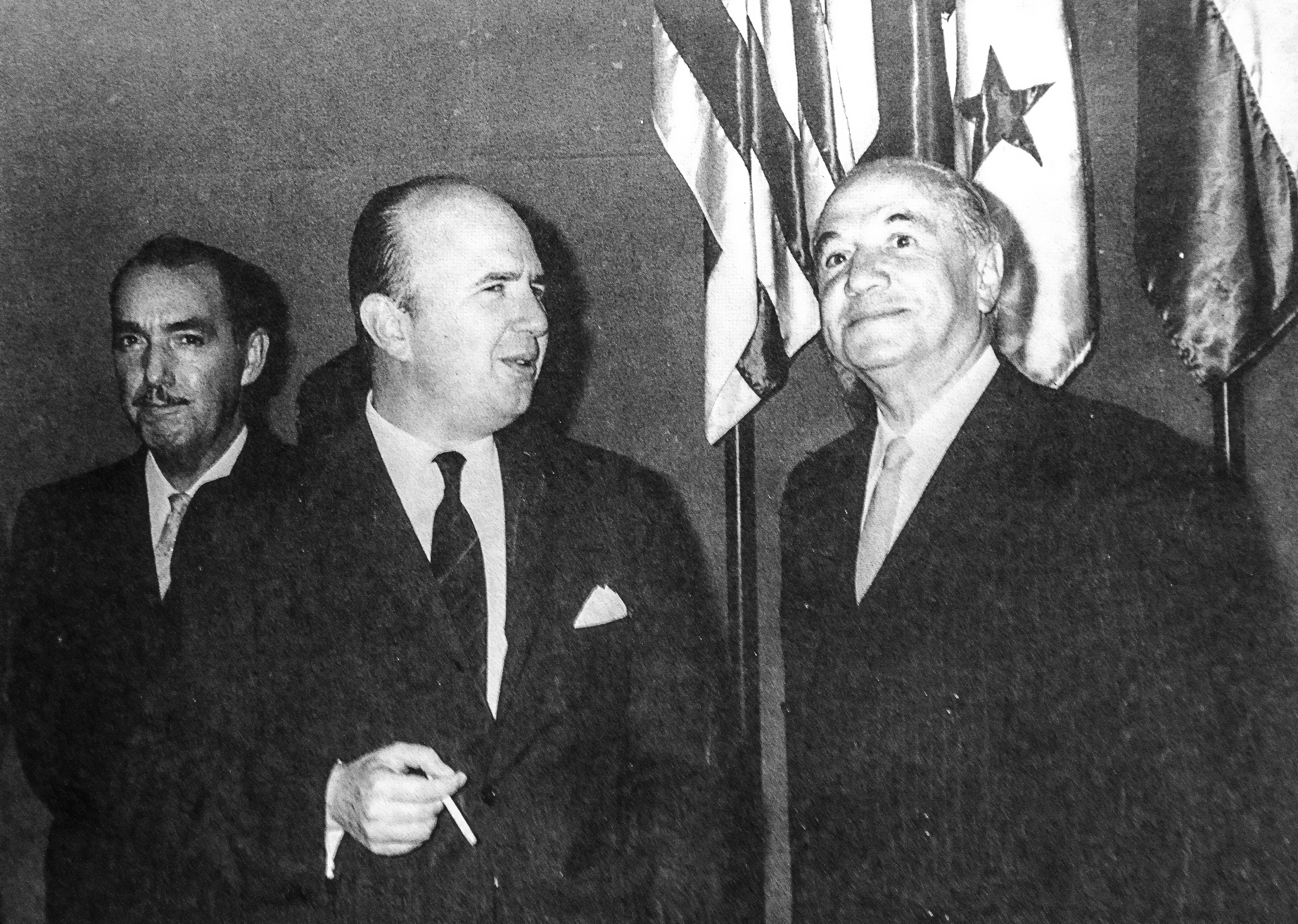 Felipe Herrera, el presidente Salvador Allende y el general Carlos Prats en la inauguración del Edificio Gabriela Mistral (GAM), 1972