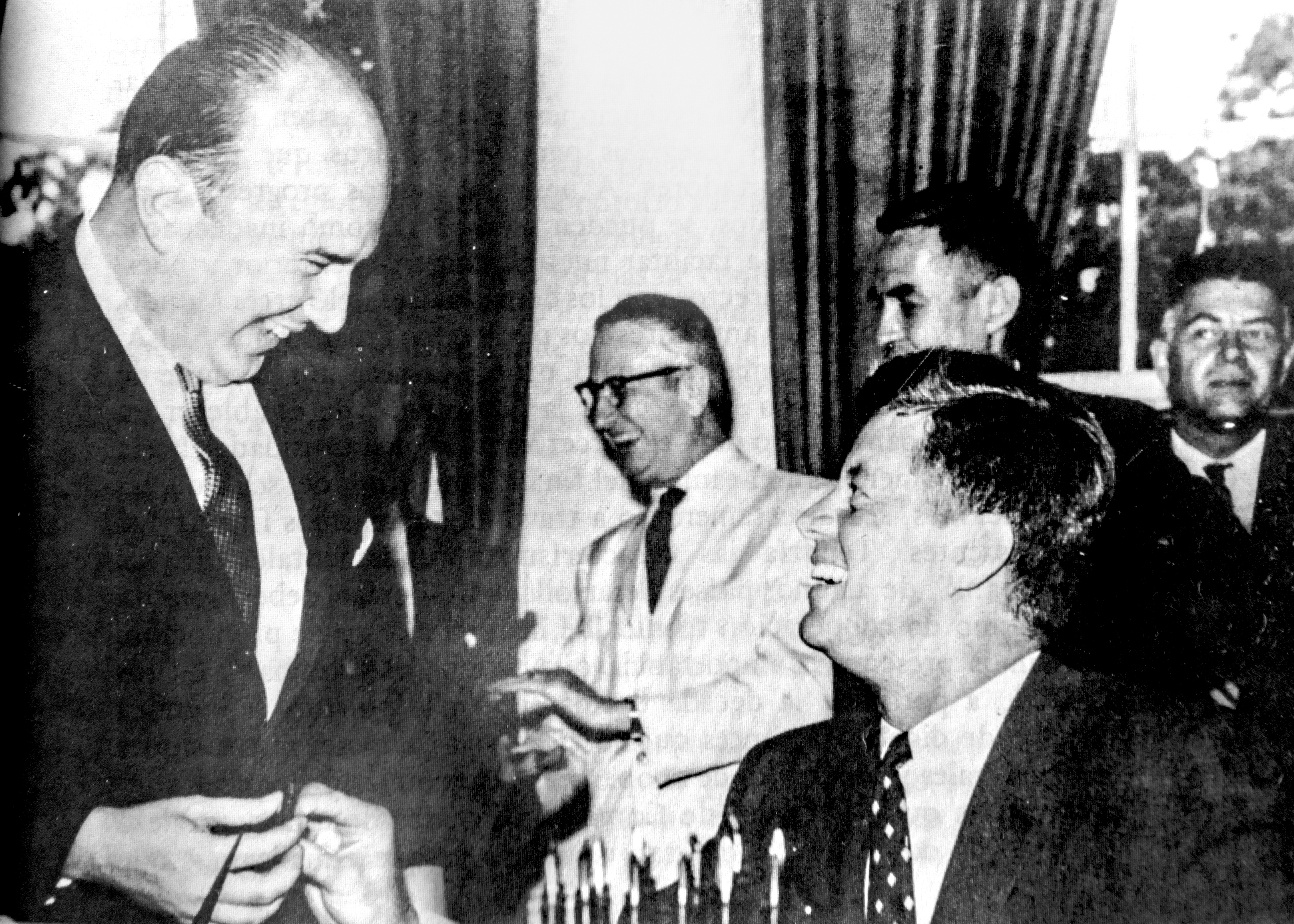Felipe Herrera con Robert Kennedy en el acto de constitución del Comité Interamericano de la Alianza para el Progreso (CIAP). Washington, 1971
