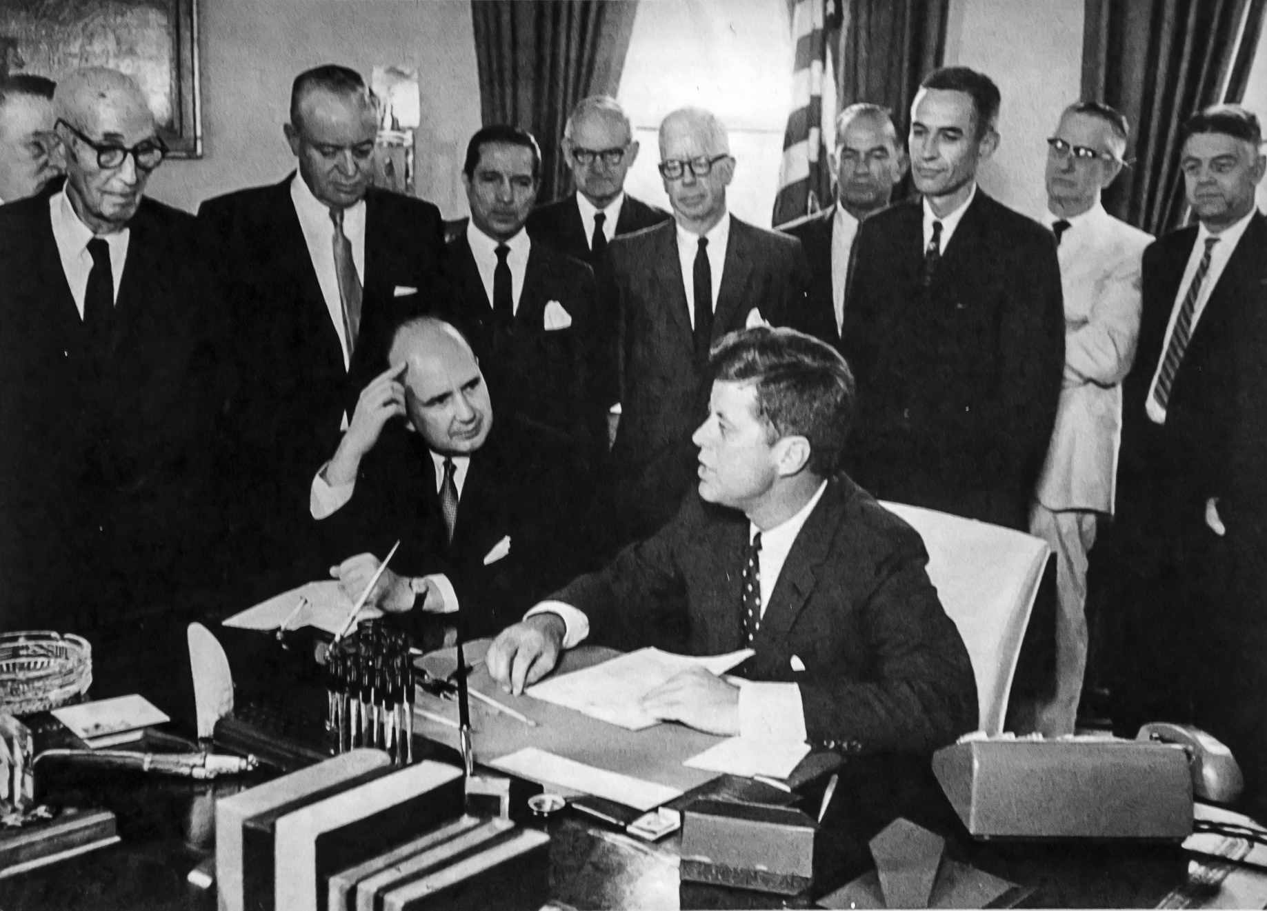 Felipe Herrera y John F. Kennedy. (Firma administración “Fondo Fiduciario de Progreso Social”. Casa Blanca, Washington, 1961)