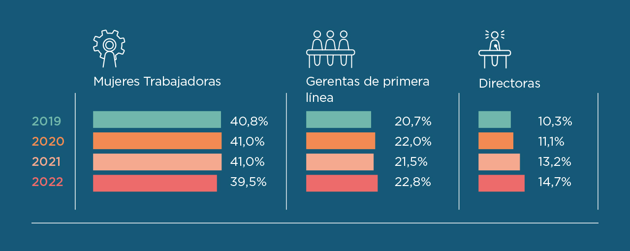 En mujeres gerentas de primera línea y directoras de las entidades se observa una tendencia positiva.
