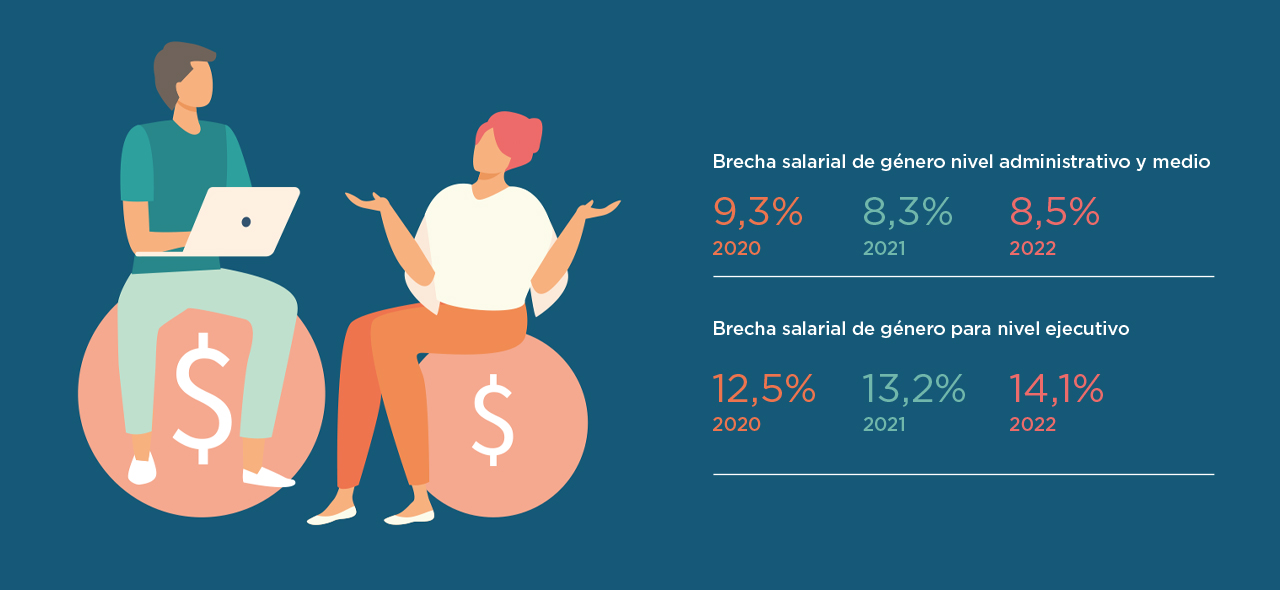 [28] En 2019 se reportan de manera distinta a la de años posteriores, por lo cual en este informe se muestra la evolución de la brecha salarial de género, por distinto nivel, de las empresas que entregaron esos datos para cada año entre 2020 y 2022.