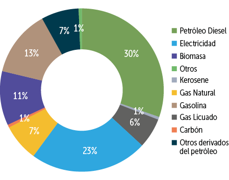 Nota: La composición de la matriz energética considera el consumo final, tanto para uso energético como no energético, de todos los sectores de la economía: Transporte, Industria y Minería, Comercial, Público, Sanitarias y Residencial, Energético (consumo propio), y Centros de Transformación.