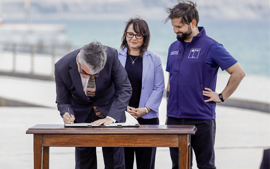 [40]En junio de 2023 el Gobierno de Chile firmó acuerdos de cooperación para el desarrollo de la Industria del Hidrógeno Verde con la Unión Europea. En agosto, el Ministerio de Energía firmó un memorándum de entendimiento (MoU) con el Banco Japonés para la Cooperación Internacional (JBIC, por su sigla en inglés) con el objetivo de promover la cooperación en sectores que utillizan Hidrógeno Verde y amoníaco como fuentes de combustible.