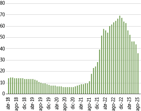 [17]Subsecretaría de Relaciones Económicas Internacionales (2023). “Informe Mensual, Comercio Exterior de Chile enero a agosto 2023”.