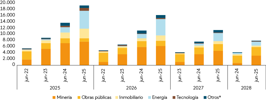 Desde septiembre de 2025, fecha de publicación de la Ley, ya comienzan a regir algunas modificaciones, una de ellas es la tramitación paralela de permisos. Por su parte, luego de un mes de la publicación, comienza a regir la estabilidad regulatoria sectorial para los proyectos de inversión, es decir, los proyectos ingresados desde la fecha mencionada se regirán bajo la regulación existente a la fecha de su ingreso sin ser afectados por cambios regulatorios futuros (Gráfico III.B.1).