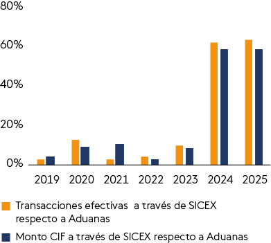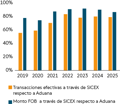 En materia de facilitación de comercio, se destaca la incorporación de casi la totalidad de las operaciones de importación al Sistema Integrado de Comercio Exterior (SICEX), lo que permite que trámites documentales de importación que originalmente podían requerir horas para ser completados, sean finalizados en minutos.