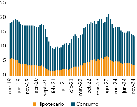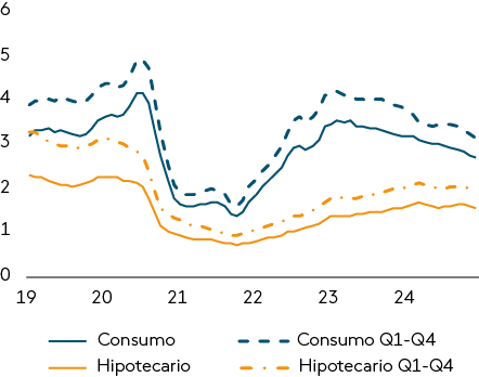 Tasa de impago de créditos hipotecarios y de consumo