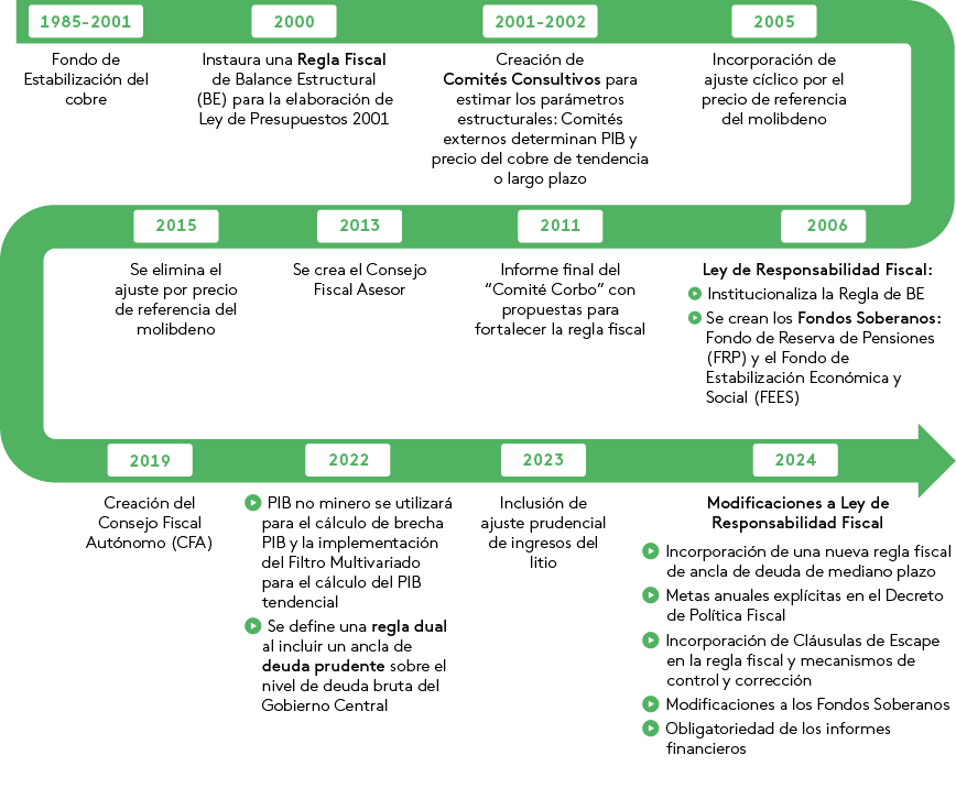 Línea de tiempo con cambios a la institucionalidad fiscal