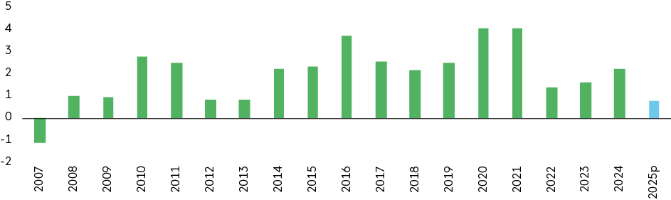 El 2025 sería el año de menor crecimiento de deuda en más de una década