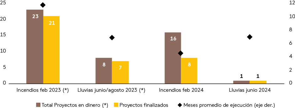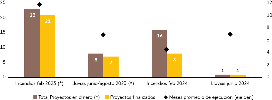 NOTA: (*) Incendios febrero 2023 y lluvias junio/agosto 2023, comparten un mismo proyecto ejecutado con recursos del Fondo.