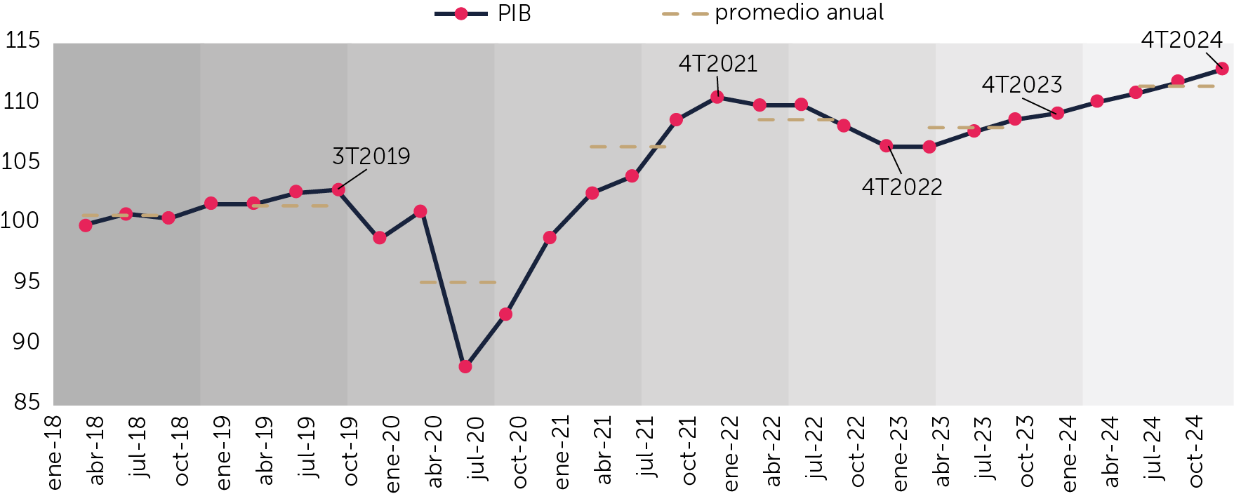 (índice 1T2018=100, trimestral, desestacionalizado)