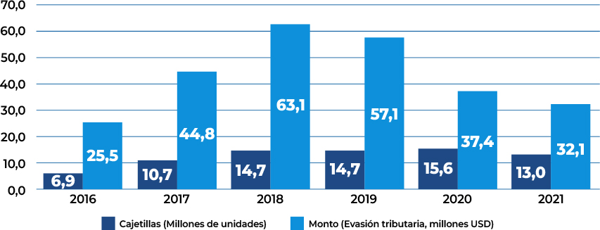 En cuanto al valor que comprende este ilícito, la Compañía Manufacturera de Papeles y Cartones (CMPC) ha sostenido que, en el periodo 2018 y julio de 2022, el robo de madera en el país comprendió más de USD270 millones. En esta línea, desde el año 2018, momento en que se cifró el ilícito en USD20 millones, la valorización del robo de madera ha experimentado un incremento constante, llegando a más de USD92 millones en el año 2021 (CMPC, 2022).