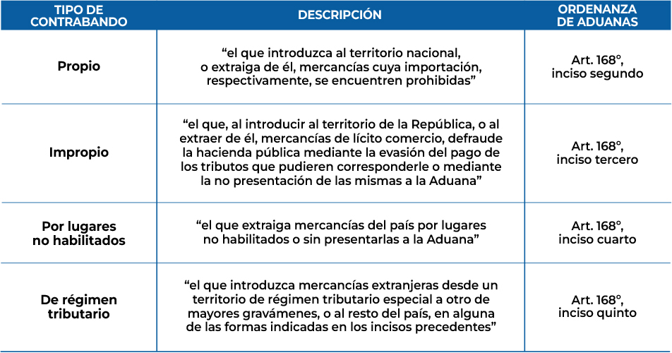 - Código Tributario, artículo 97º, número 8: El comercio ejercido a sabiendas sobre mercaderías, valores o especies de cualquiera naturaleza sin que se hayan cumplido las exigencias legales relativas a la declaración y pago de los impuestos que graven su producción o comercio.