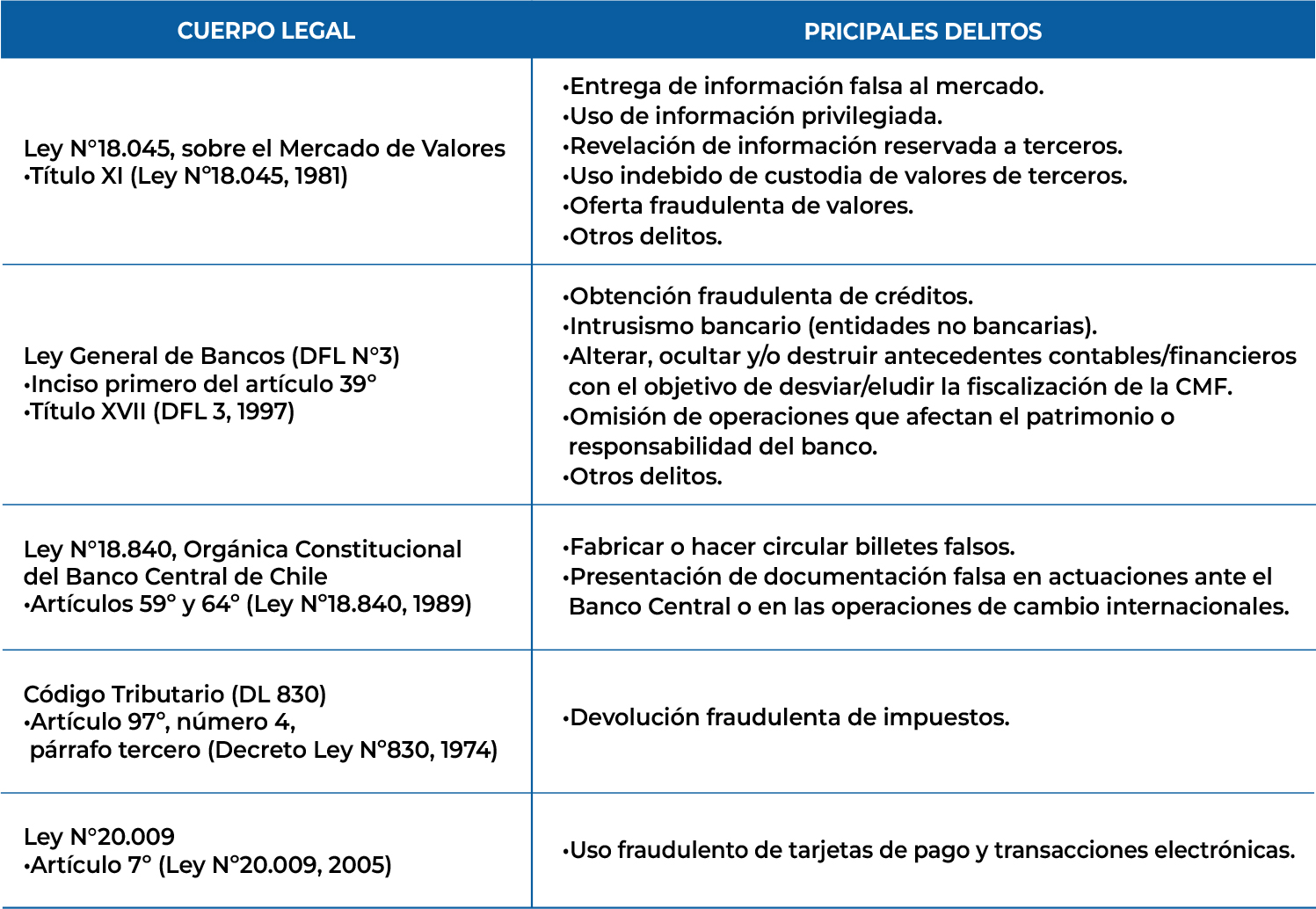 Conjuntamente, entre los años 2020 y 2021, la CMF emitió diversas alertas al mercado en las cuales denunció presuntos delitos de estafas, perpetrados, principalmente, por empresas oferentes de créditos, usualmente utilizando sitios web. Dentro de los engaños y técnicas utilizadas por estas empresas se encuentran (CMF, 2020a) (CMF, 2020b) (CMF, 2020c):
