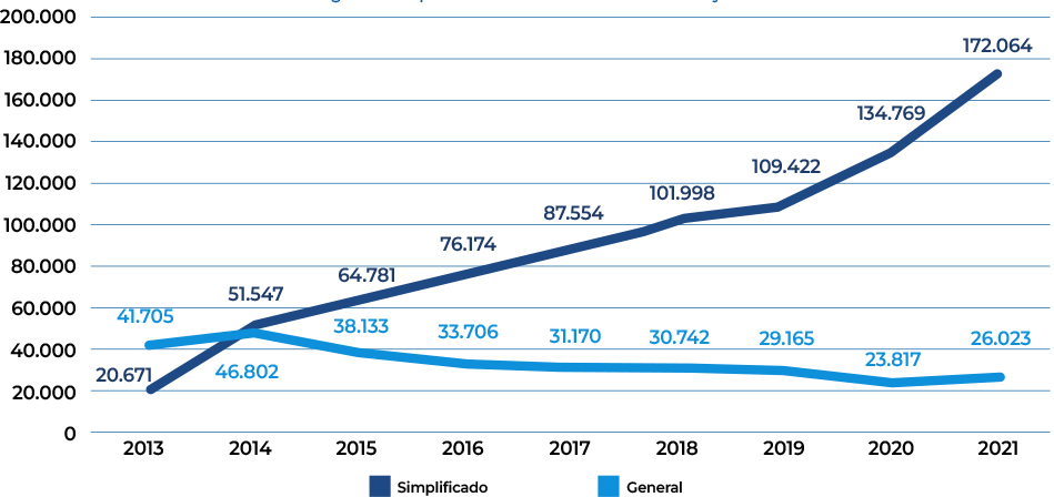Nota: El régimen simplificado comenzó en el mes de mayo de 2013.