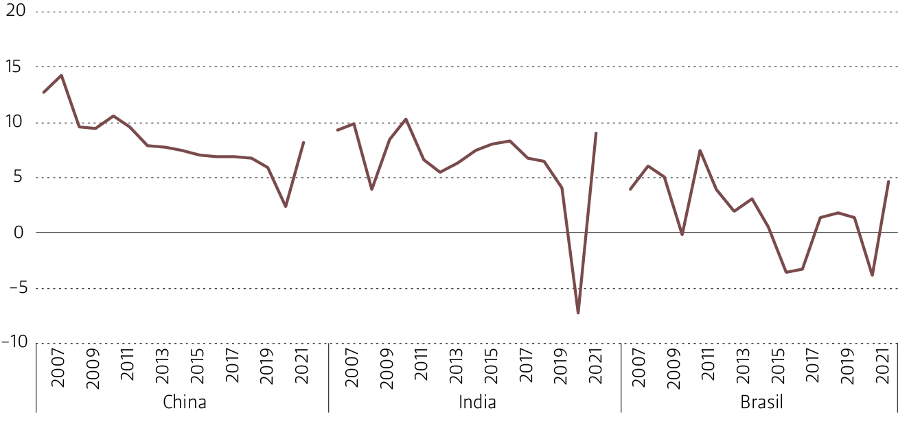 Crecimiento del PIB Real de algunas economías emergentes, 2006 – 2021