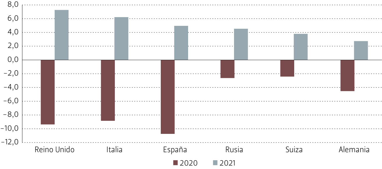Crecimiento PIB Real de economías seleccionados de Europa en 2021