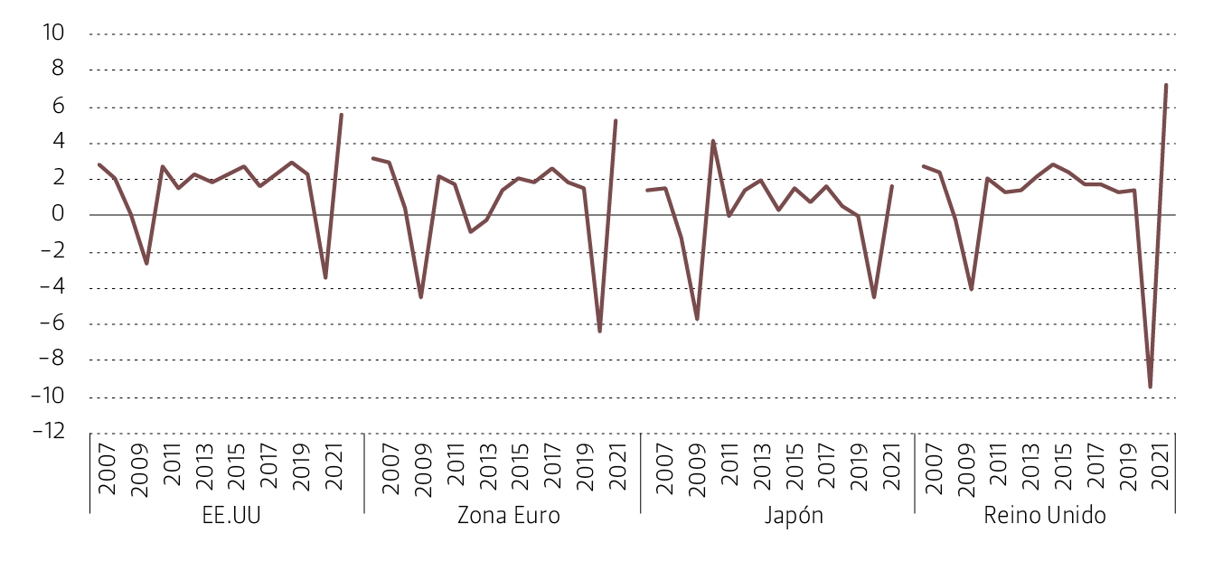 Para un mejor entendimiento del desempeño reciente de los fondos soberanos, en esta sección se resumen los principales acontecimientos de la economía internacional durante el año 2021.