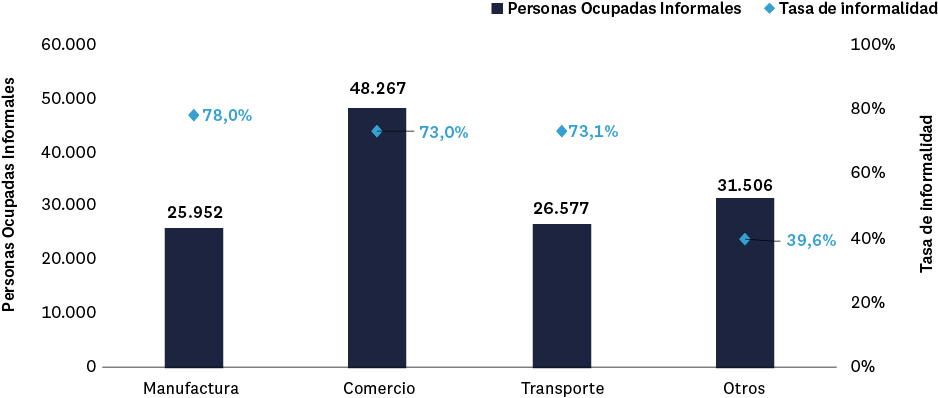 Fuente: Elaboración propia en base a ENE (INE). Notas: La categoría “Otros” agrupa los sectores de agricultura, minería, energía, agua, construcción, hotelería y gastronomía, información y comunicaciones, sector financiero, sector inmobiliario, actividades profesionales, servicios, administración pública y defensa, enseñanza, salud, artes, hogares y otras actividades de servicios.