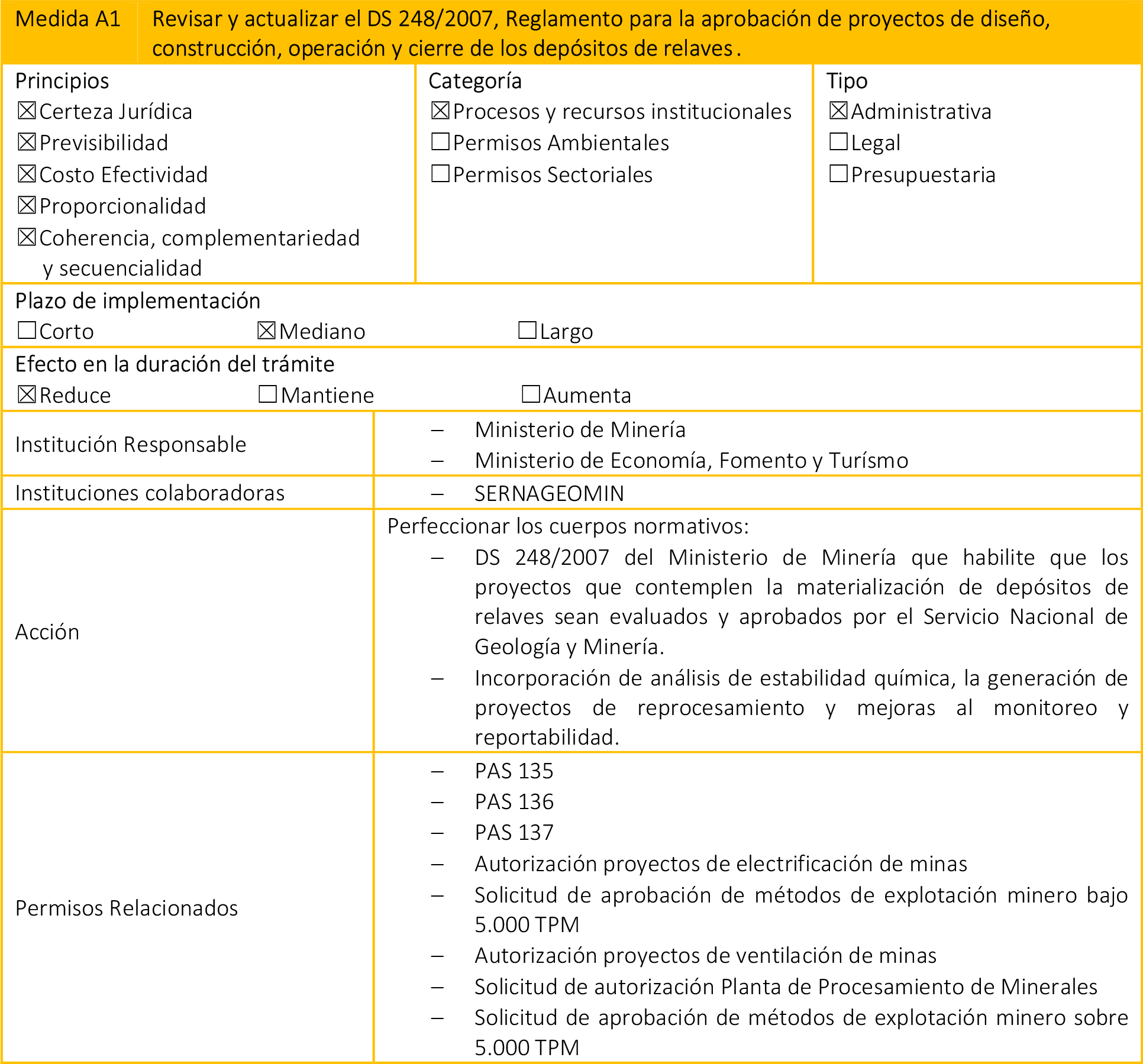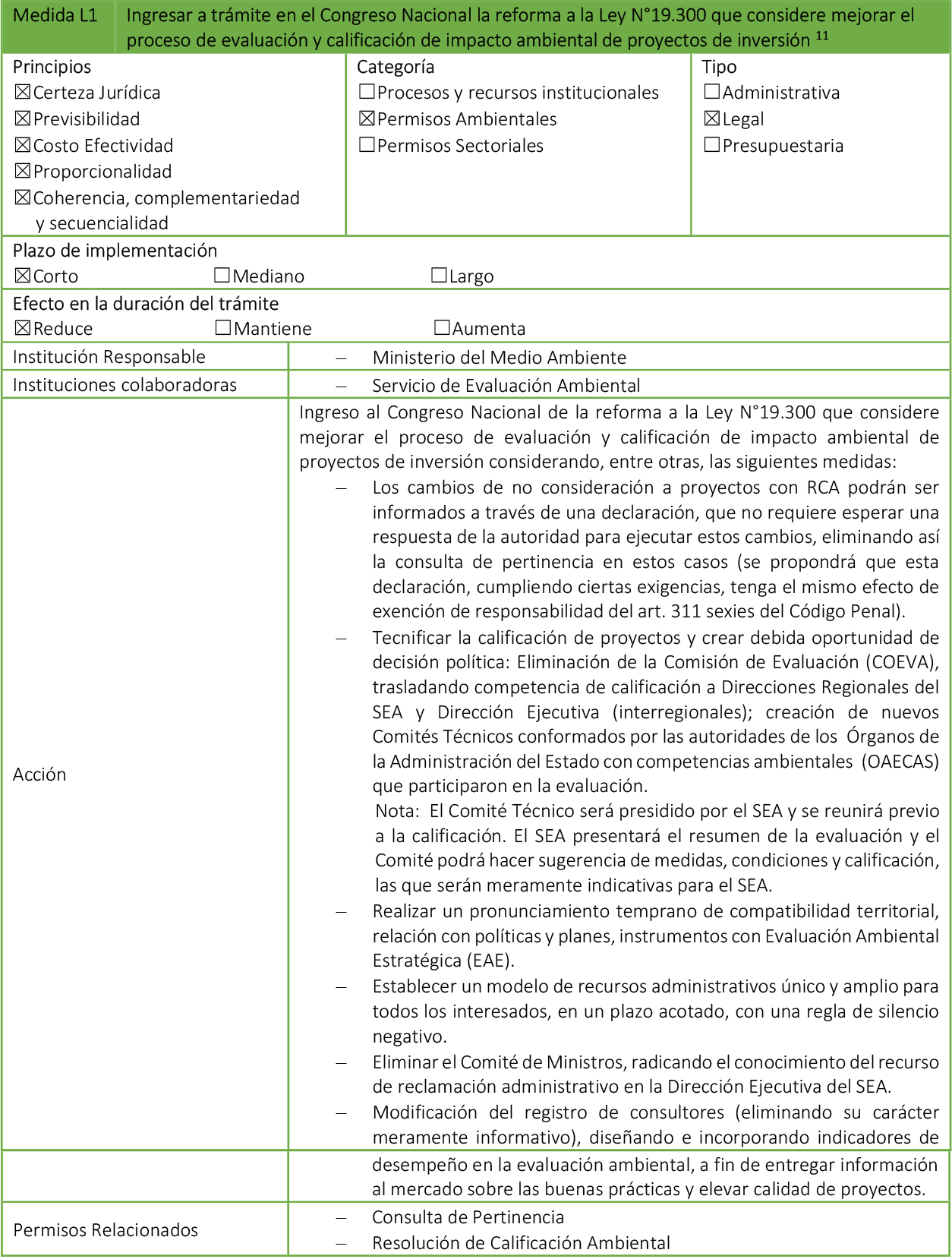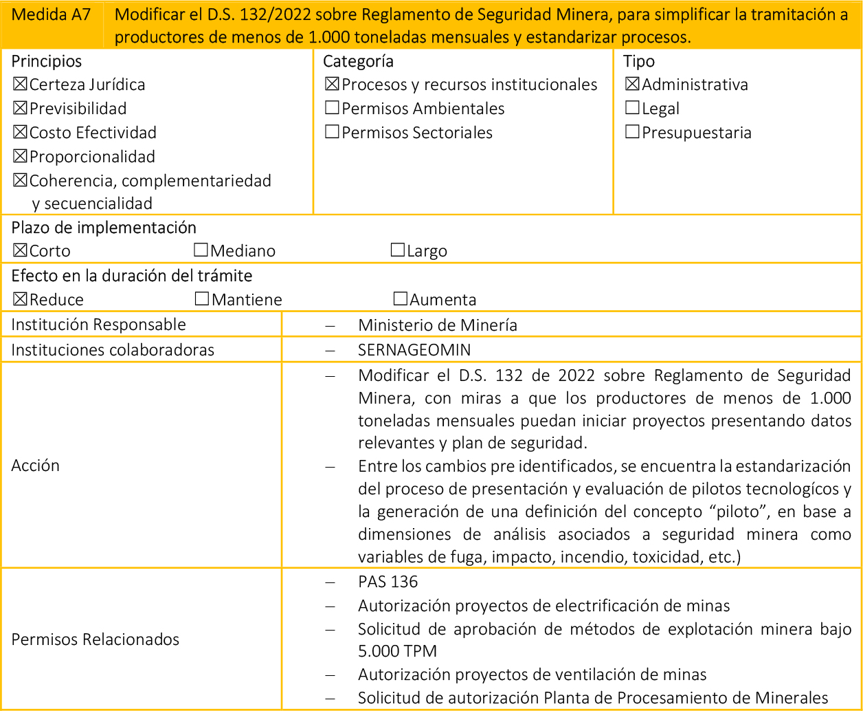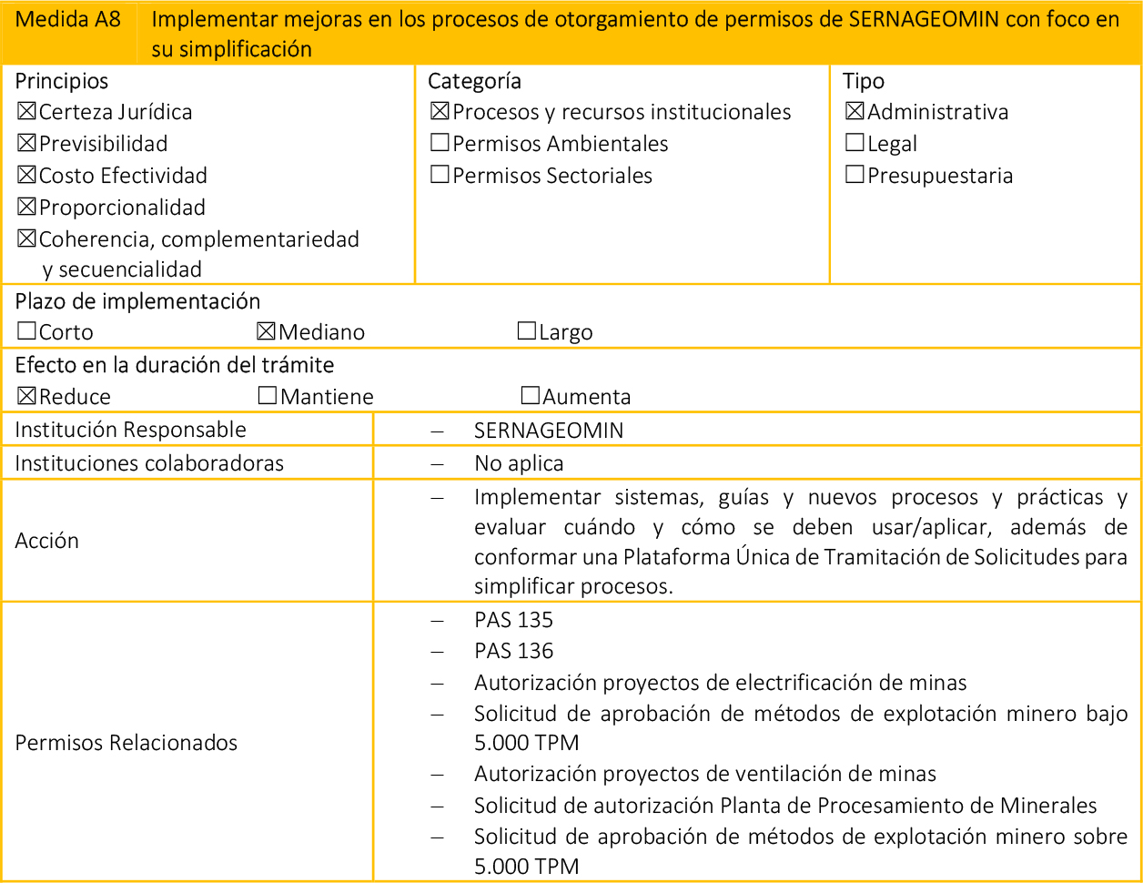 - Medidas Legales: Paquetes de modificaciones legales, que requieren su tramitación en el Congreso Nacional, además de que pueden impactar en otros cuerpos normativos.