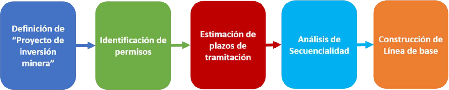A partir de las definiciones metodológicas y la información recopilada, CNEP propuso la siguiente ruta crítica para las tipologías de proyectos de inversión minera antes señaladas. Para la estimación de las líneas de base, sólo se consideran los permisos prioritarios, de mayor relevancia, conforme su impacto en los plazos de tramitación del proyecto.