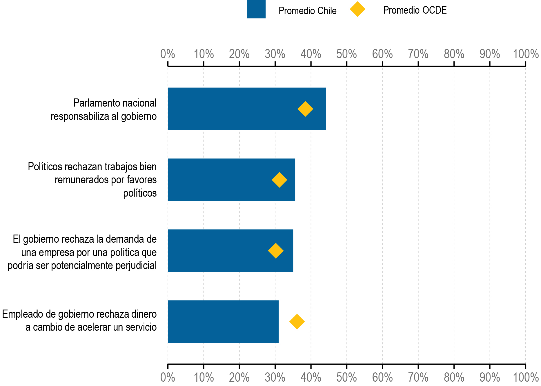 Este capítulo explora las expectativas de la gente en Chile respecto a la integridad, apertura e imparcialidad/equidad del gobierno. Asimismo, las contextualiza con información sobre las políticas gubernamentales actuales y las compara con buenas prácticas en los países de la OCDE.