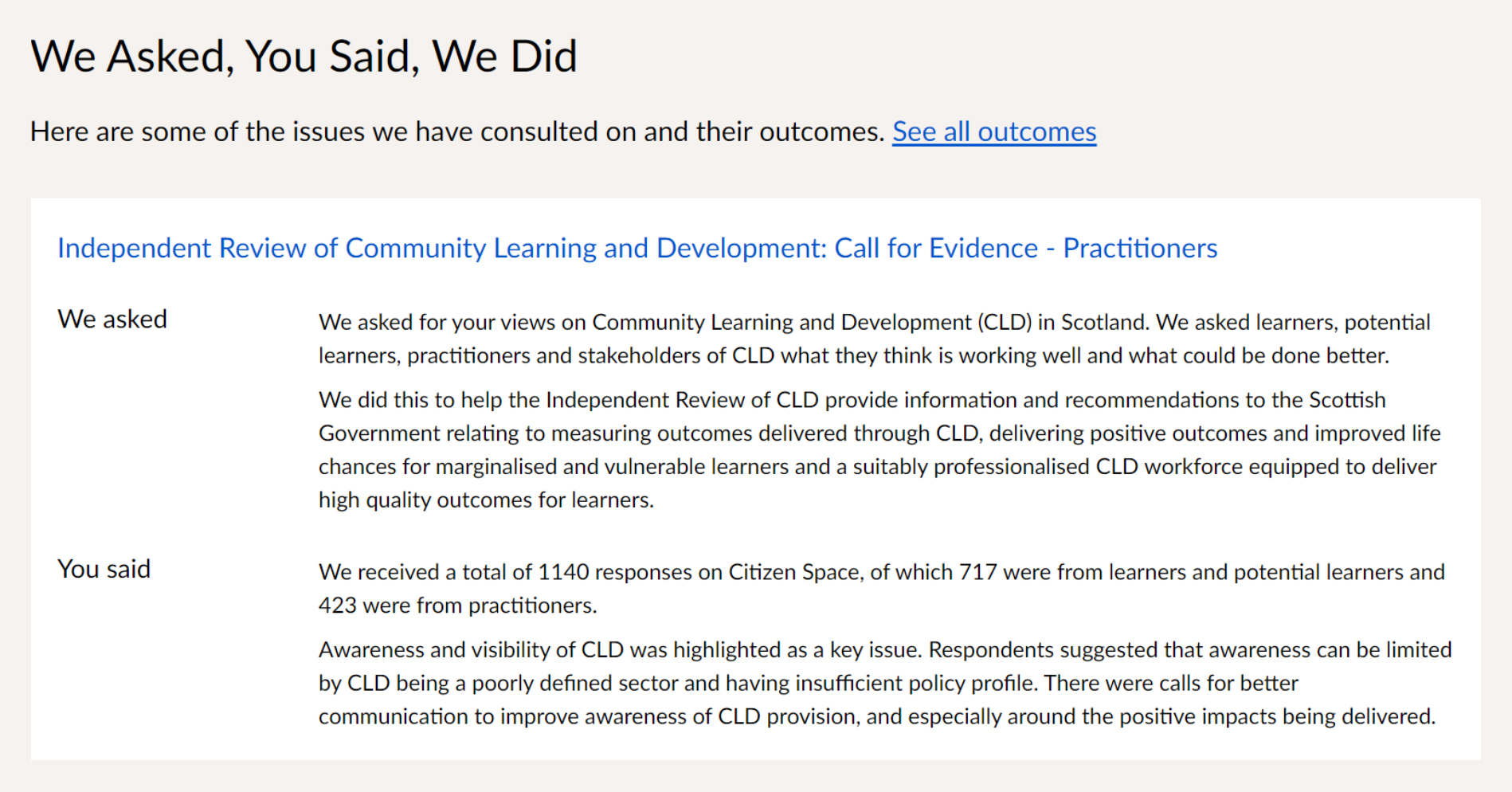 Chile podría invertir en construir puentes para acortar estas brecha y abordar el posible escepticismo, especialmente considerando que los resultados no parecen sugerir desinterés, sino, por el contrario, apetito por la participación. Estos puentes podrían involucrar diferentes tipos de iniciativas. Primero, Chile podría basarse en sus propias experiencias positivas, reforzando los programas existentes para aumentar las oportunidades de participar y mejorar la percepción de ser escuchado, lo cual no se relaciona con aumentar la cantidad sino la calidad de las consultas (Nabatchi, 2012). Para aprovechar la participación chilena en las consultas públicas, el gobierno podría aumentar los esfuerzos en comunicar objetivos específicos y pasos, establecer expectativas realistas entre la ciudadanía, y dar retroalimentación a los aportes proporcionados por la gente, para que puedan seguir su impacto en las políticas. Los esfuerzos de los gobiernos brasilero, australiano y escocés sobre consultas públicas pueden ser ejemplos relevantes a considerar (Cuadro 4.3).
