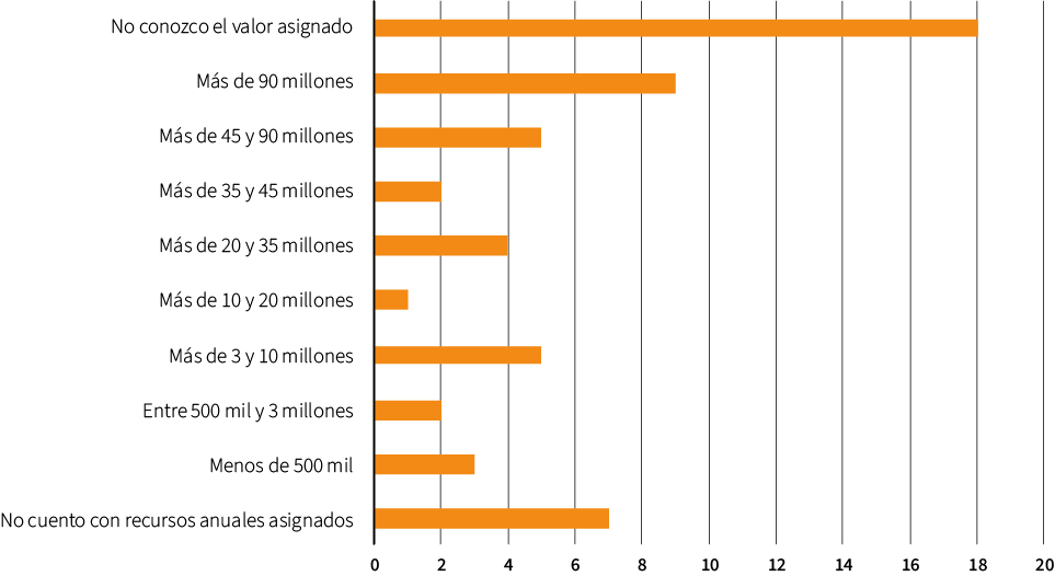 Financiamiento con panorama heterogéneo: un tercio desconoce el monto asignado, 13% no cuenta con recursos y un 36% destina $20 millones o más.