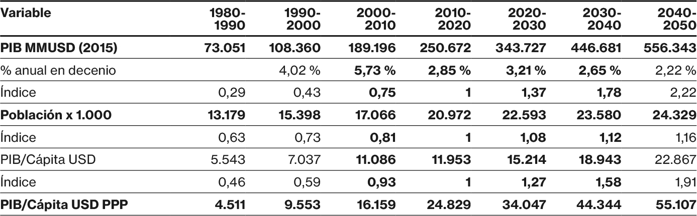 Evolución y proyección de variables económicas y demográficas de Chile al 2050
