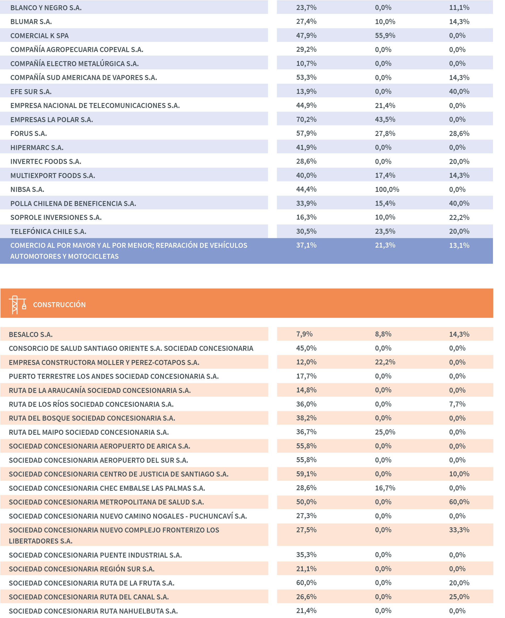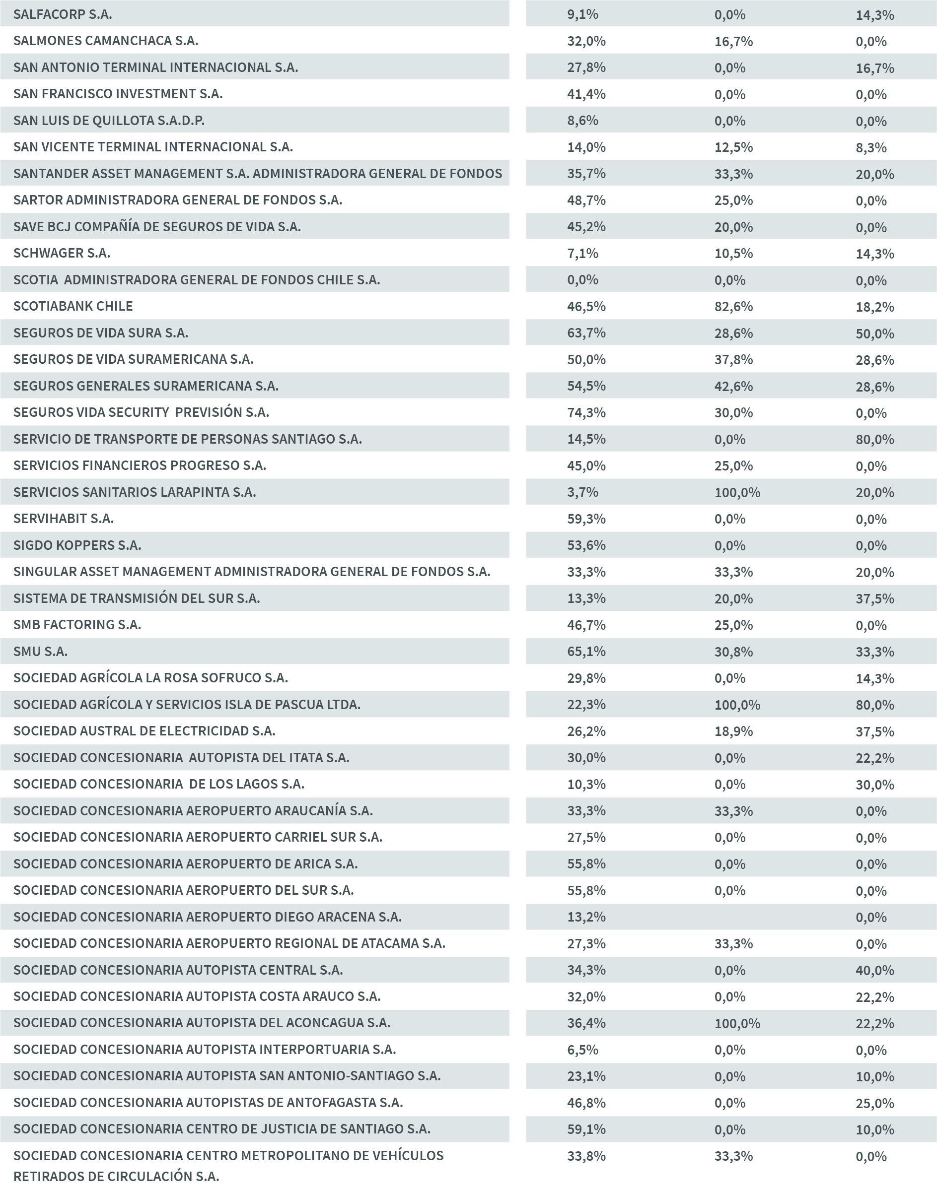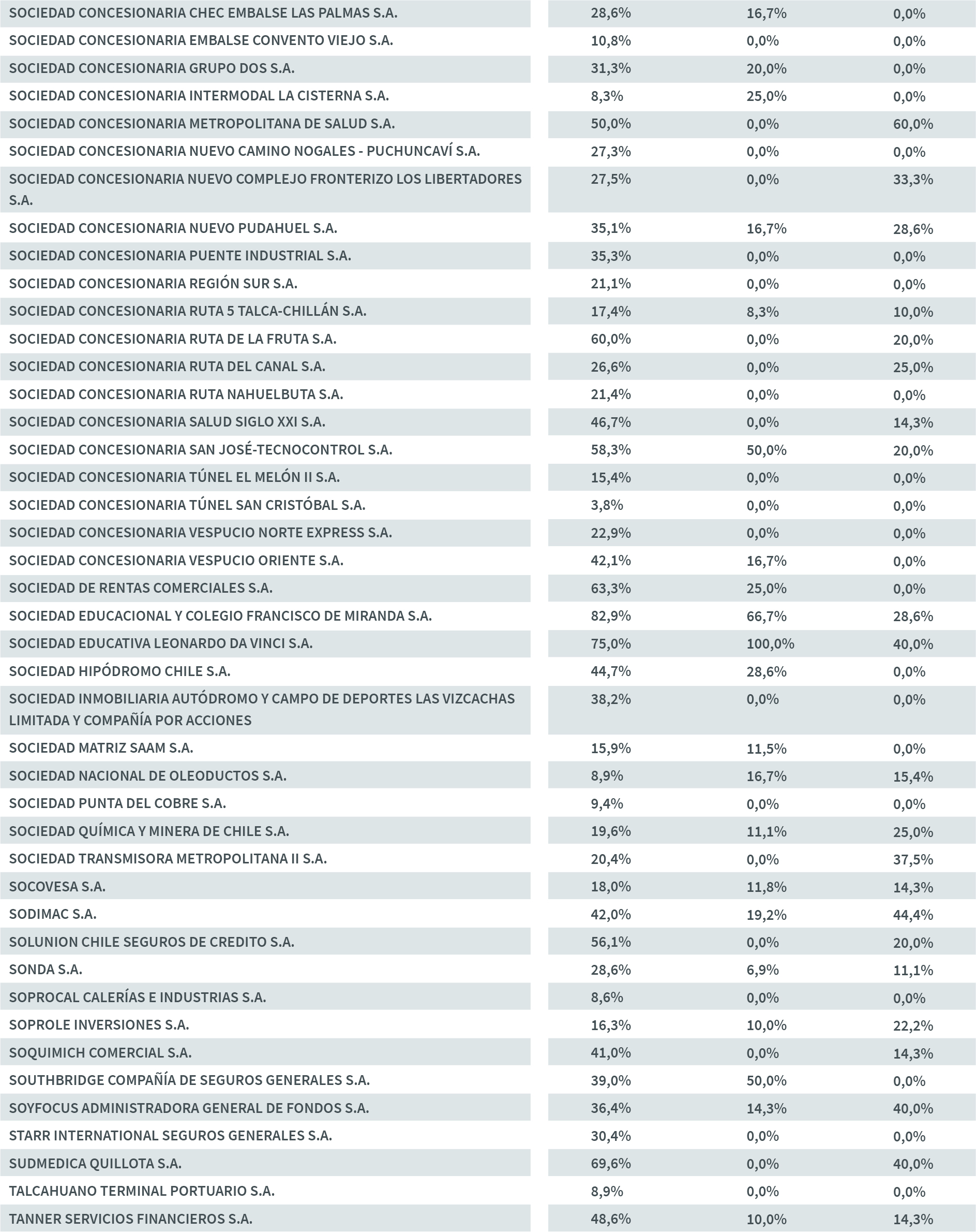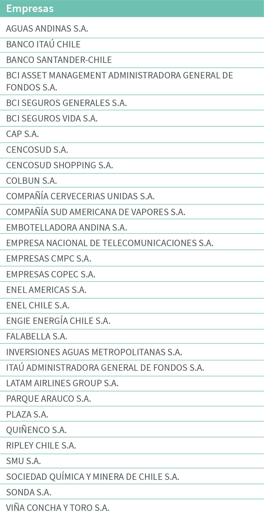 En el Cuadro A13 se muestra la lista total de empresas IPSA consideradas en este reporte.