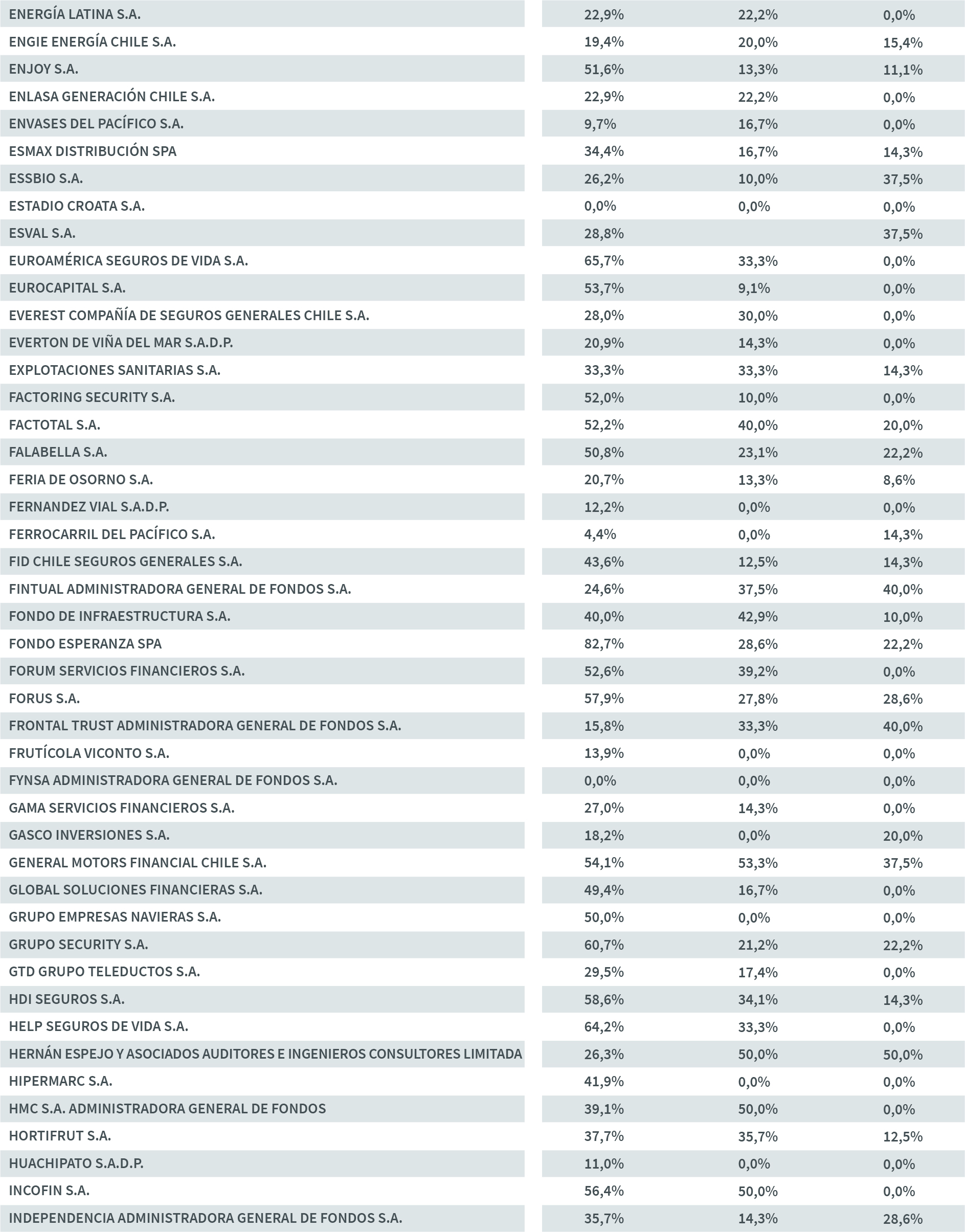 Fuente: Elaboración propia en base a la información reportada por las entidades emisoras de valores a la CMF, a través de las NCG 386 y 461.