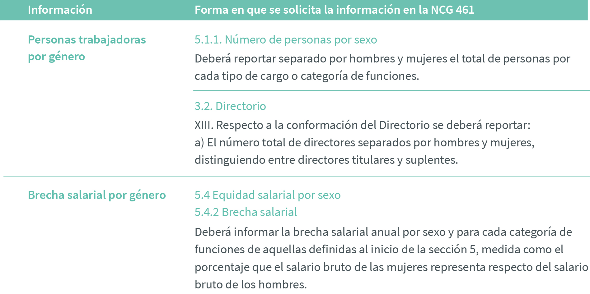 Fuente: elaboración propia en base a la NCG 461 del 2021.
