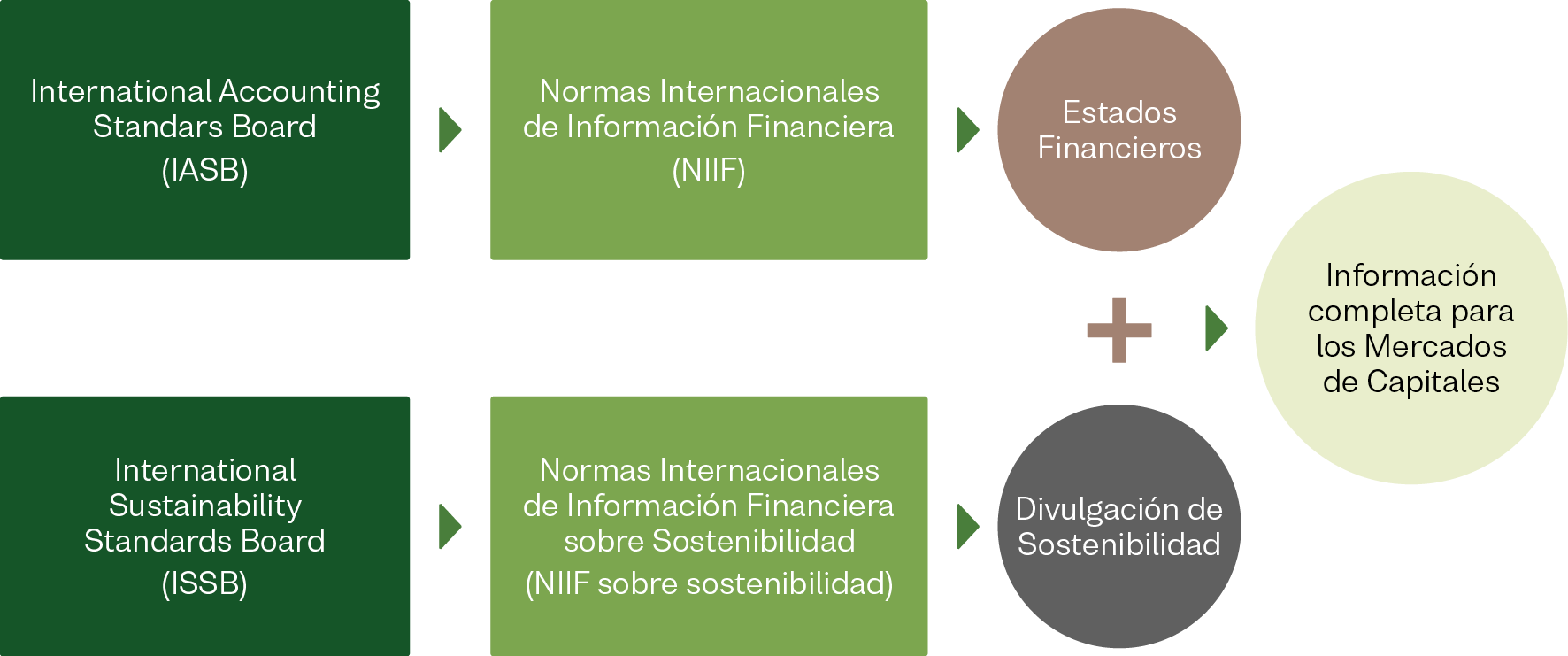La fundación IFRS es una organización sin fines de lucro, respaldada por el G20, que desarrolla normas globales aceptadas de Información Financiera (NIIF), a través de un consejo llamado IASB. Por su parte, con la creación del ISSB se desarrollarán Normas Internacionales de Información Financiera sobre sostenibilidad (NIIF sobre sostenibilidad). De esta forma la Fundación IFRS proveerá a los marcos de capitales una perspectiva completa sobre los riesgos y oportunidades financieras sobre sostenibilidad ligados a la creación de valor.