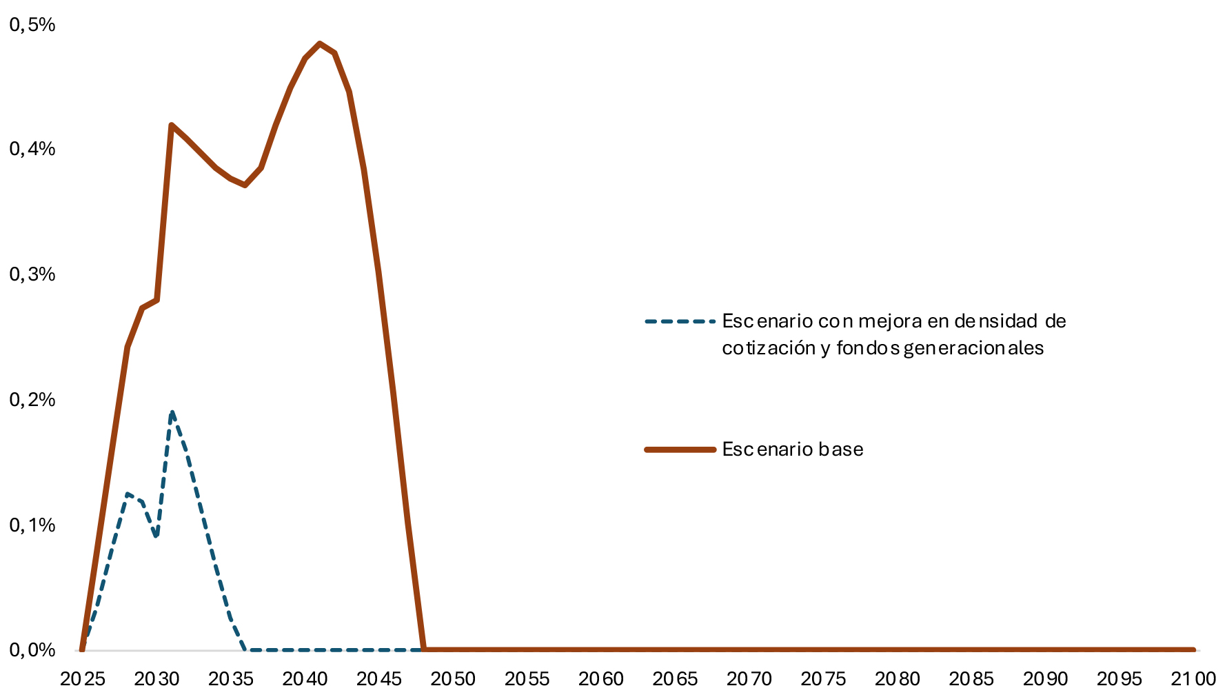 Exposición máxima, aumento de densidad de cotización y fondos generacionales, expresados como porcentaje del PIB