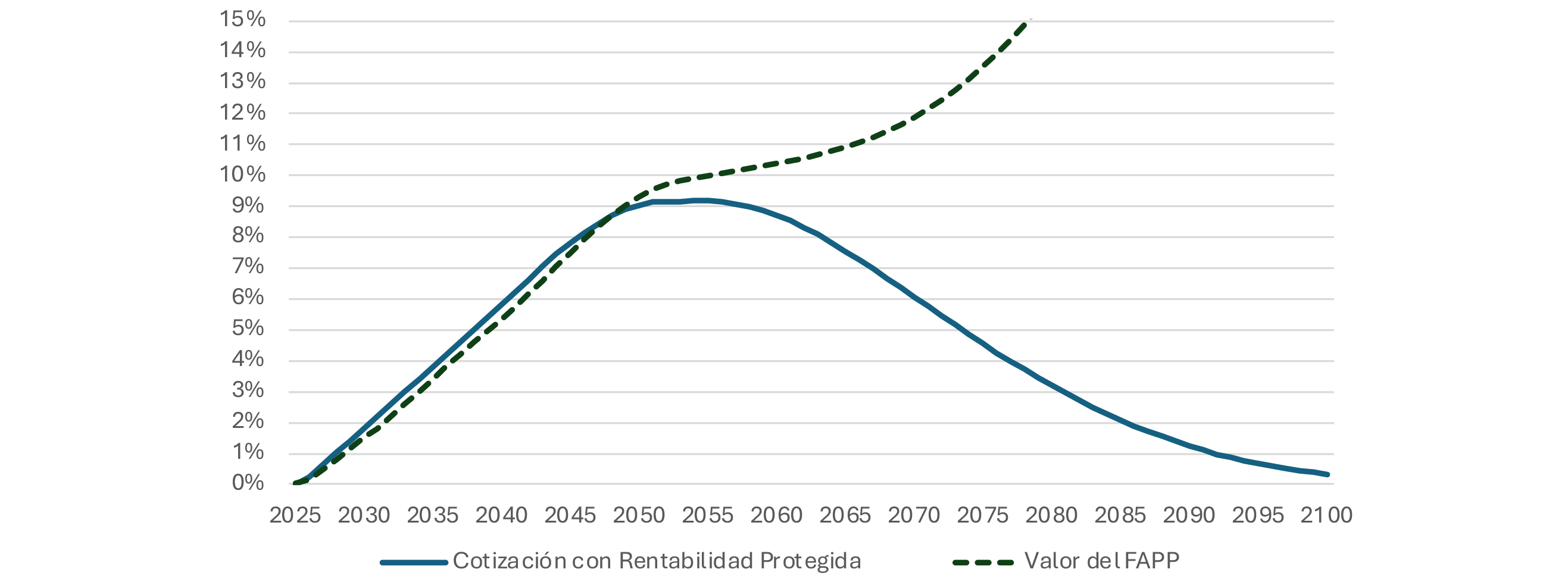 Respecto de la tasa del bono determinada por el mecanismo de la cotización con rentabilidad protegida, en la medida que las tasas sean superiores, será más difícil para el fondo cumplir con esos requerimientos. Sin embargo, este se vería acotado por la relación de los retornos de los activos que determinan la tasa del bono y los activos que determinan la rentabilidad del fondo.