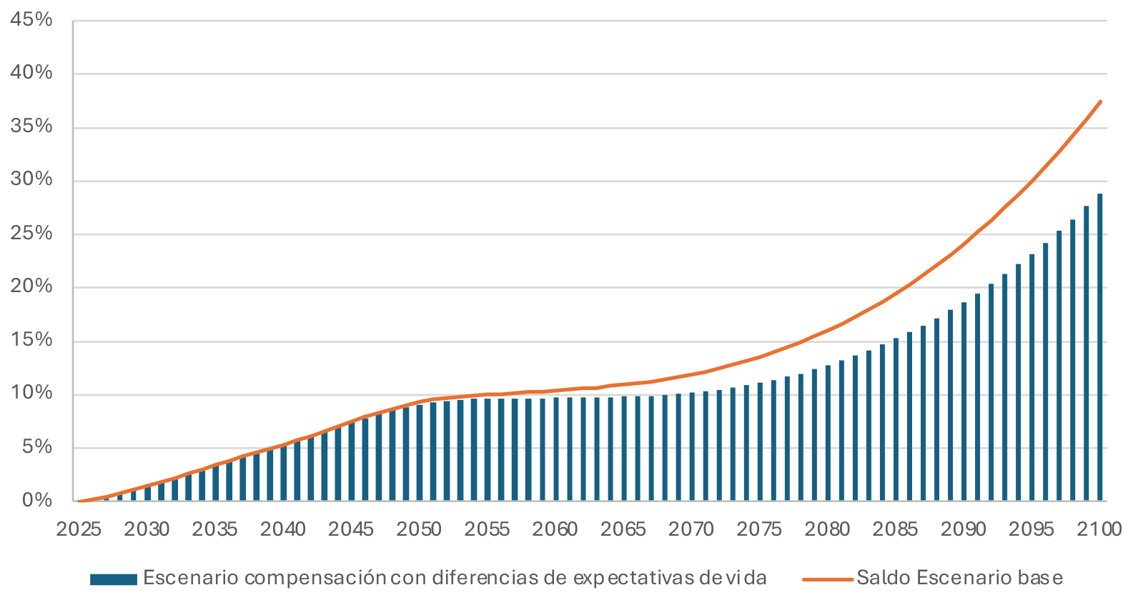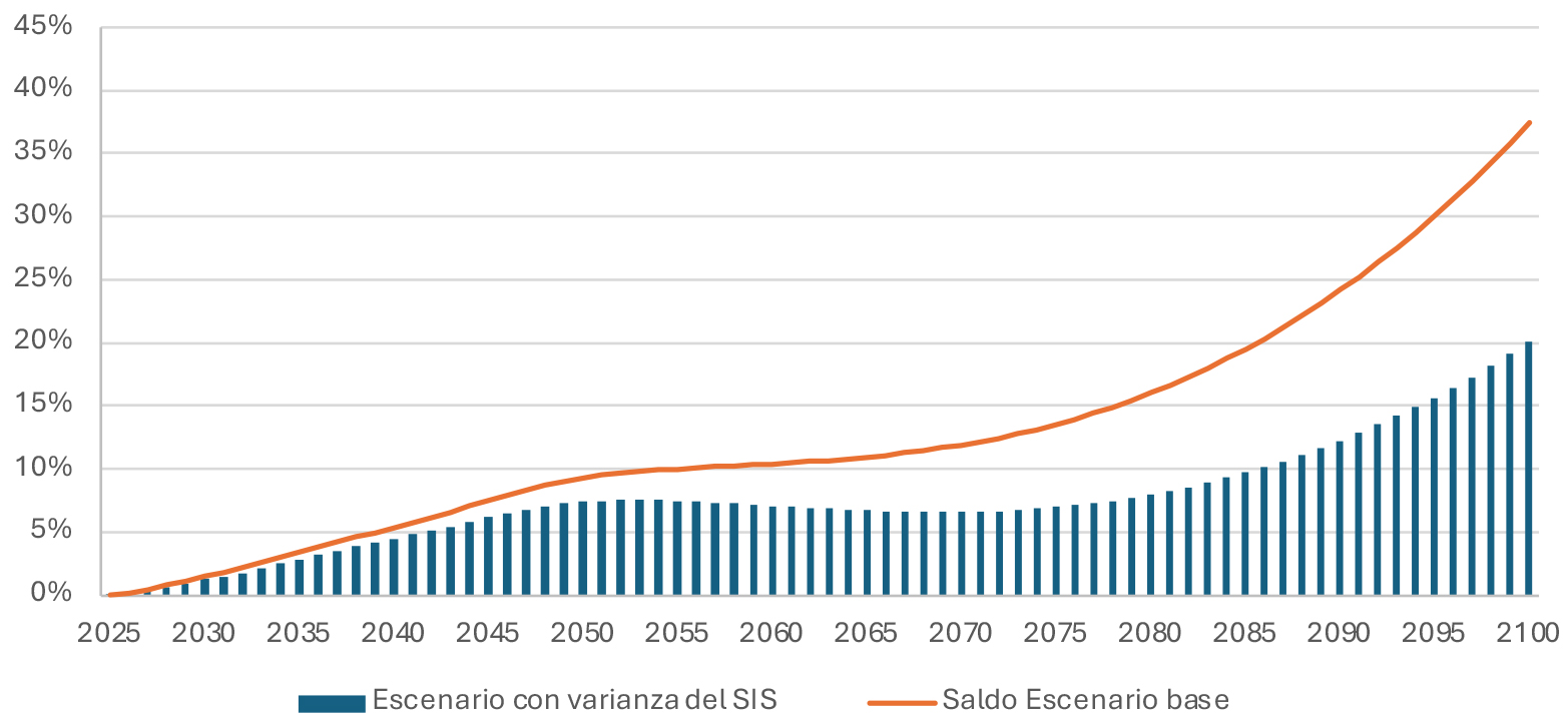 La actual reforma al sistema previsional, al ampliar las cotizaciones de cargo del empleador y crear el Seguro Social, financiado con cotizaciones del empleador y un aporte fiscal predeterminado, contribuirá a reducir las presiones futuras sobre el pilar no contributivo de pensiones. Más antecedentes respecto de la necesidad de una reforma previsional desde el punto de vista de la sostenibilidad fiscal se pueden encontrar en el documento “Análisis sobre las urgencias de una reforma previsional” (Dipres, 2024)[9].