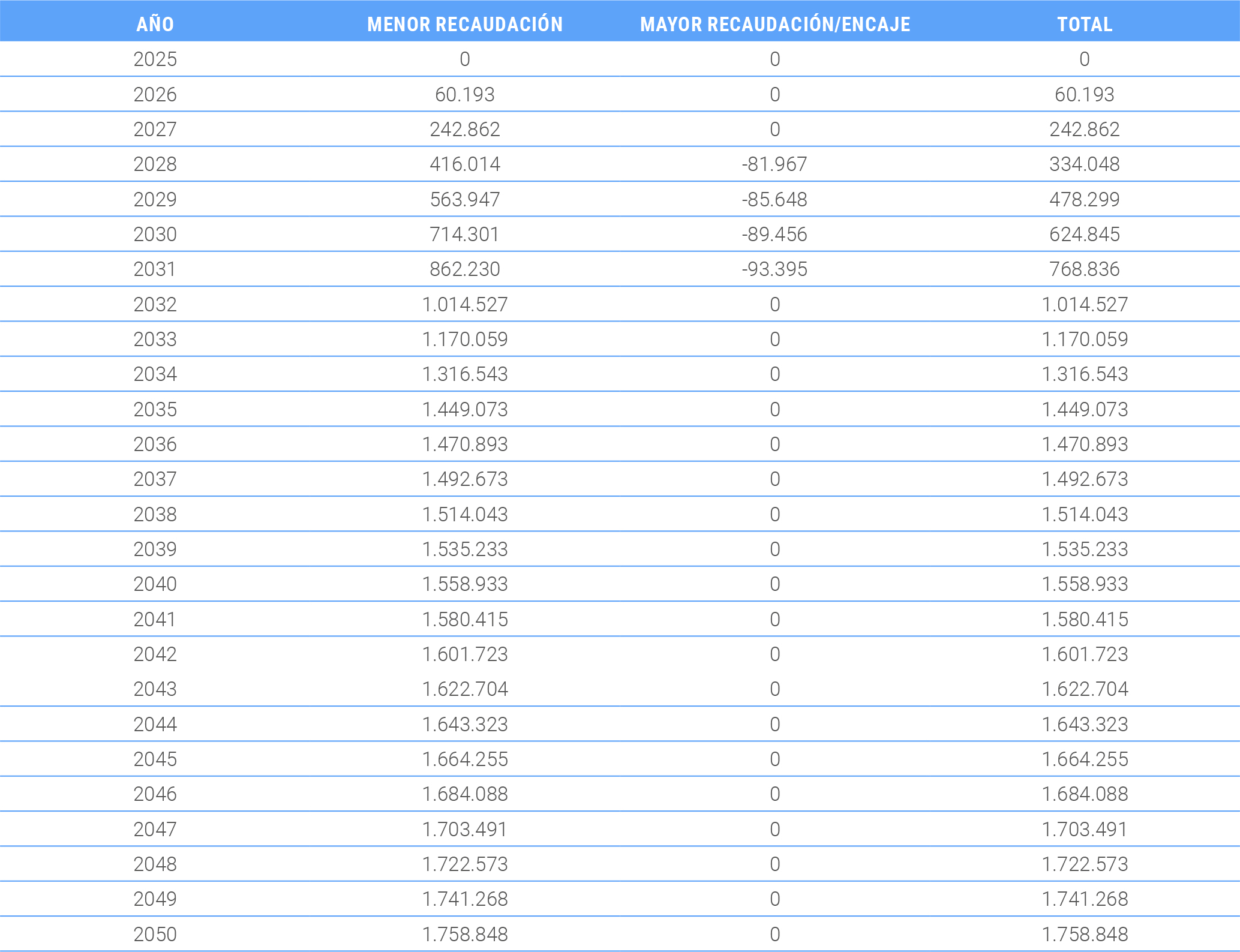 Resumen de la menor recaudación fiscal por la reforma de pensiones