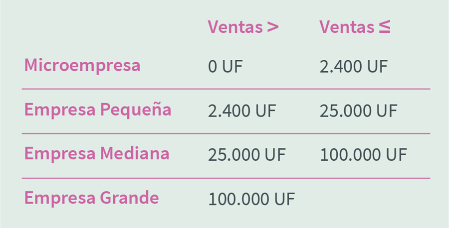 Para este análisis, se utilizó el criterio que establece el Servicio de Impuestos Internos para el tamaño de las empresas según las ventas anuales que éstas reportan en los Formularios 22 y 29. Los rangos se clasifican de la siguiente manera: