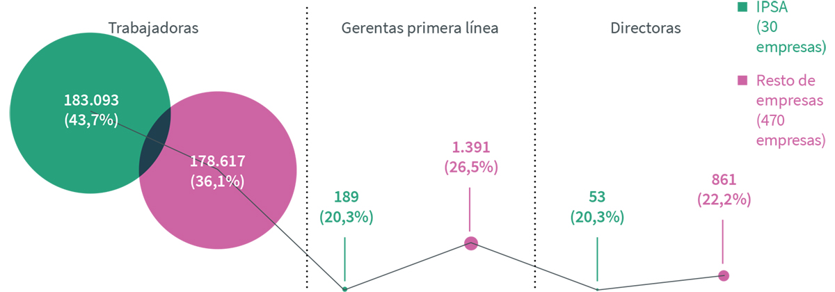 En esta sección se realiza un análisis de las brechas de género entre las empresas según su pertenencia al Índice de Precios Selectivo de Acciones (IPSA) y de todas las empresas según el tamaño de ventas. En ambos casos se evaluaron el total de 500 empresas que componen la muestra del reporte.